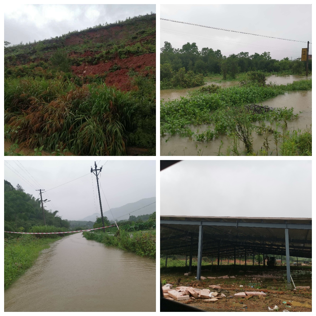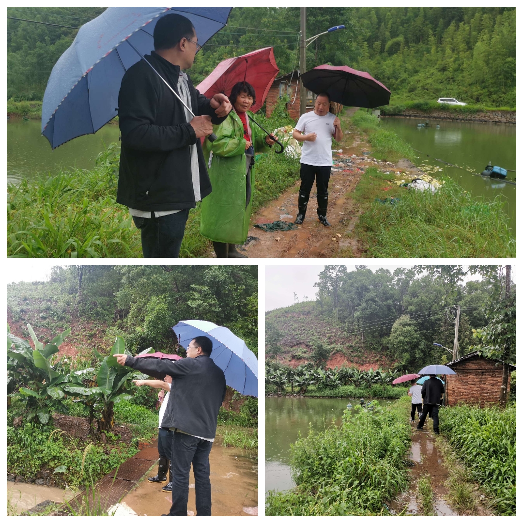 在检查过程中发现了农场水渠多处受损,边坡塌方,道路被淹,农作物受灾,农场行洪道上游堵塞,检查组及时提出有效措施,确保行洪道的通畅,防止行洪道水涌入鱼塘。