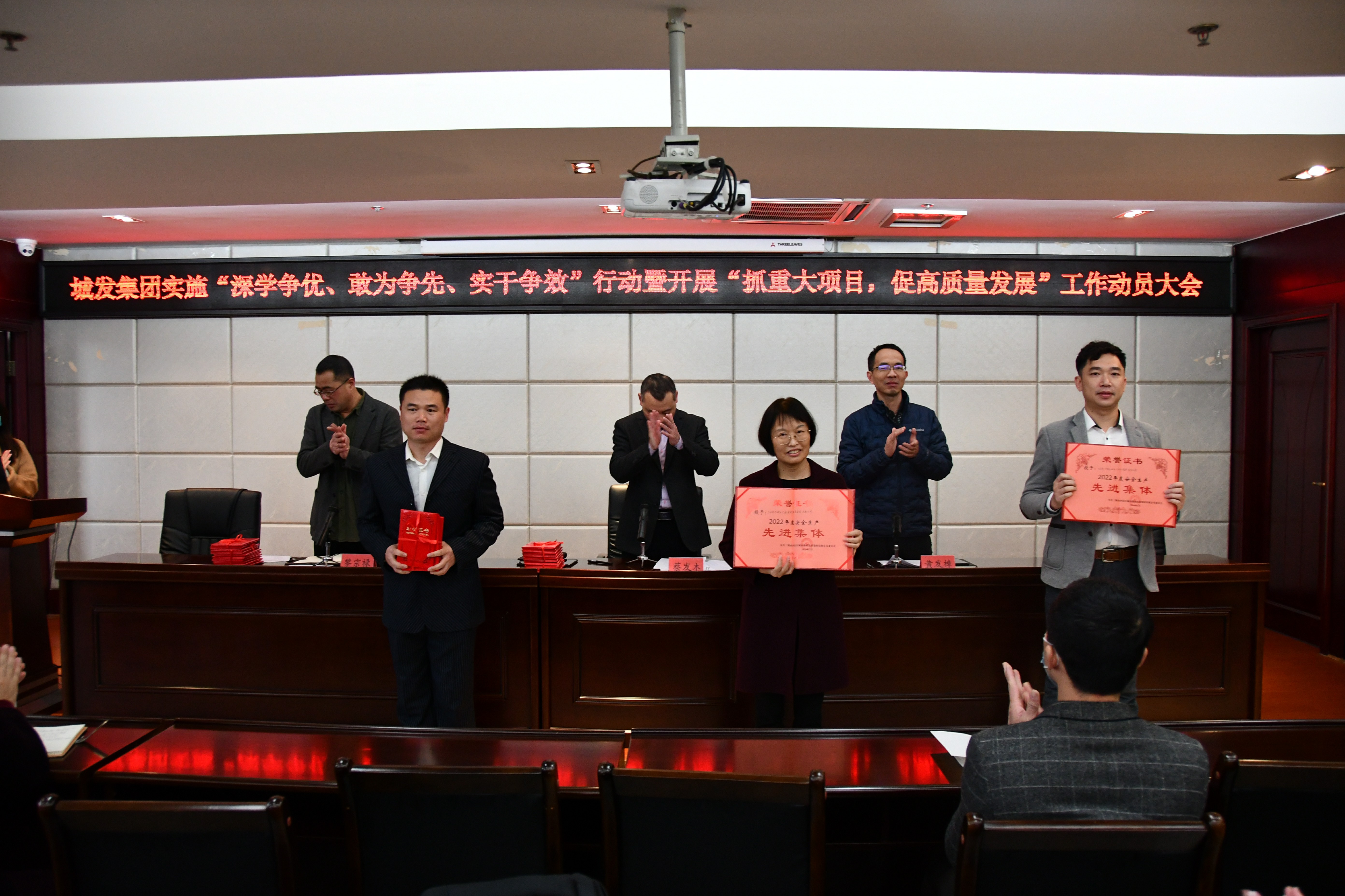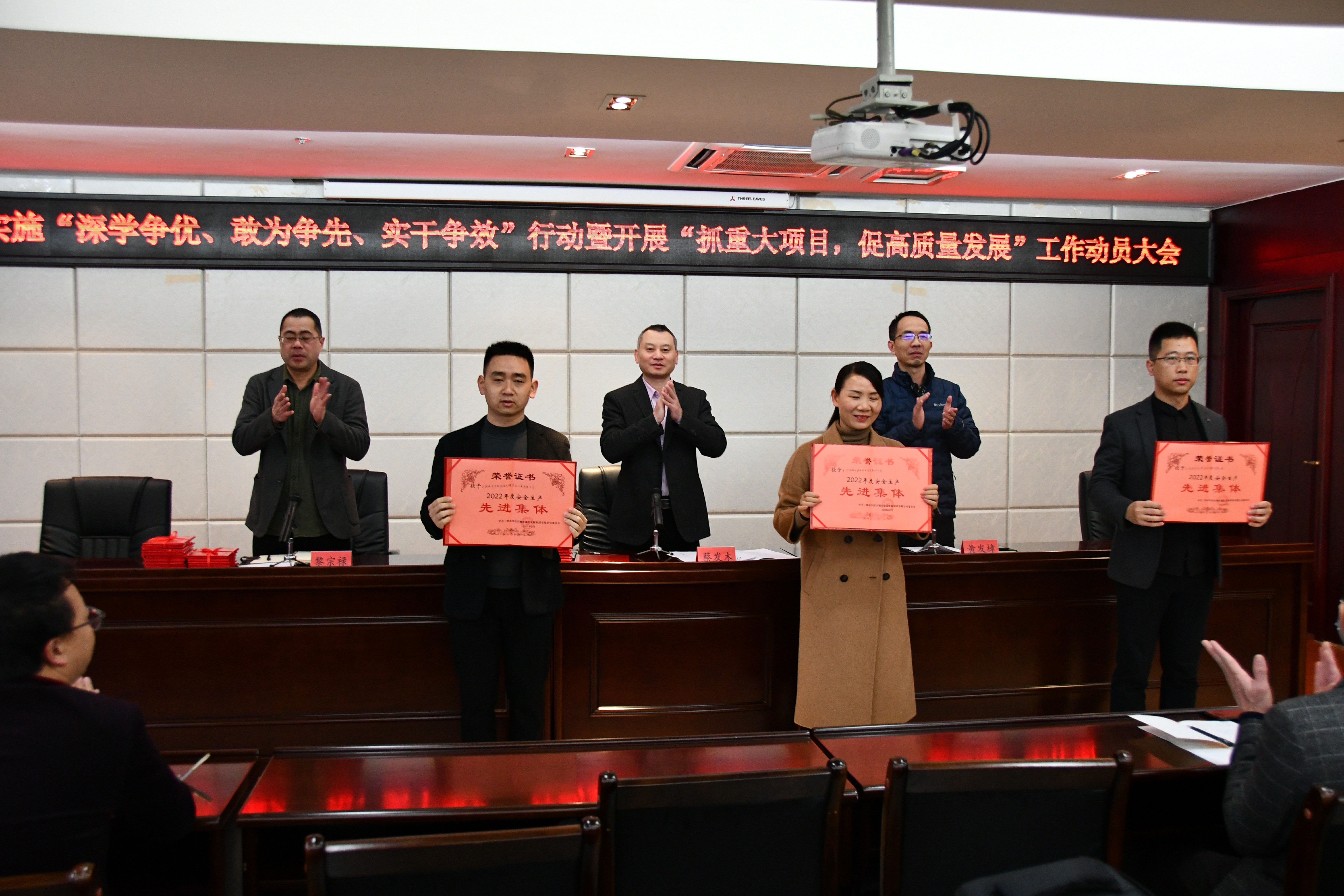 集团党委副书记、副总经理黎宗禄宣读了关于表彰2022年度优秀员工、安全生产先进集体、安全生产先进个人的决定,各获表彰单位代表、个人依次上台领奖。