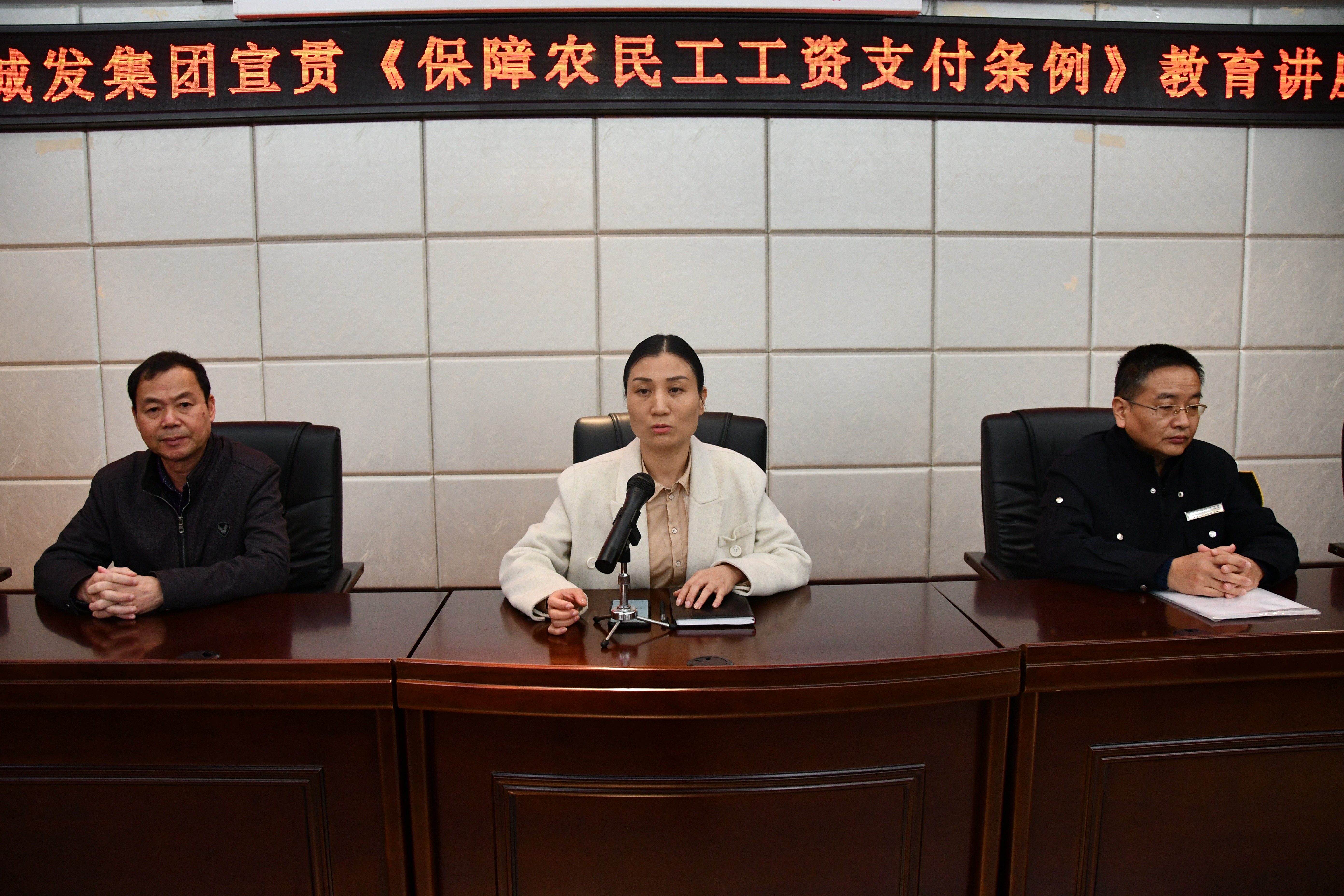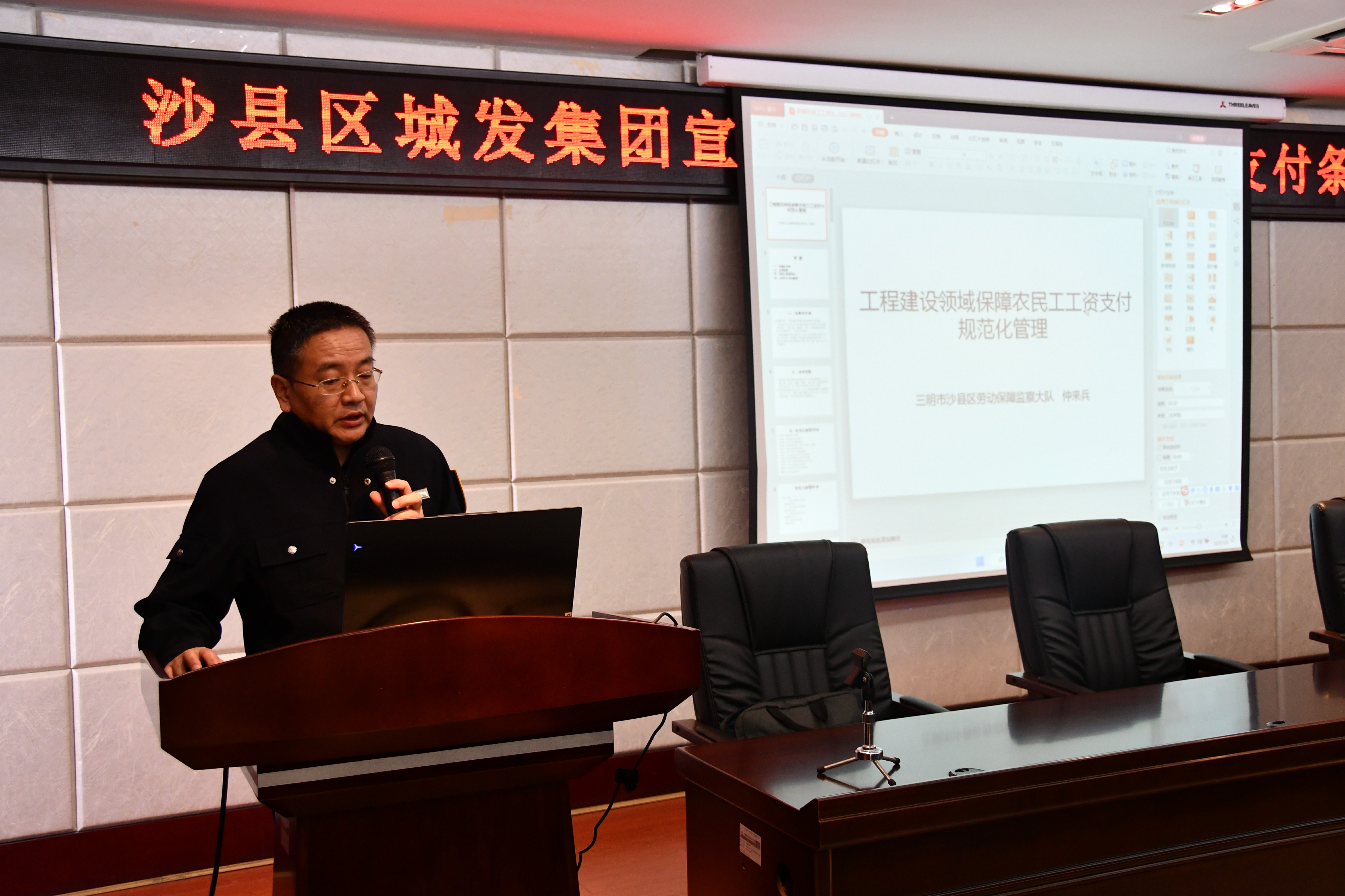 为认真贯彻落实党中央、国务院关于保障农民工工资支付工作相关要求,切实维护农民工合法权益,3月8日上午,beat365中文官方网站组织召开宣传贯彻《保障农民工工资支付条例》教育讲座,邀请三明市沙县区人力资源和社会保障局副局长陈芳杞、劳动保障监察大队大队长仲来兵对《条例》进行专题解读。讲座由集团副总经理范萍主持,集团各二、三级子公司负责人、各建设单位项目负责人、总监(专监)、各施工单位劳资员,共计七十余人现场听讲。