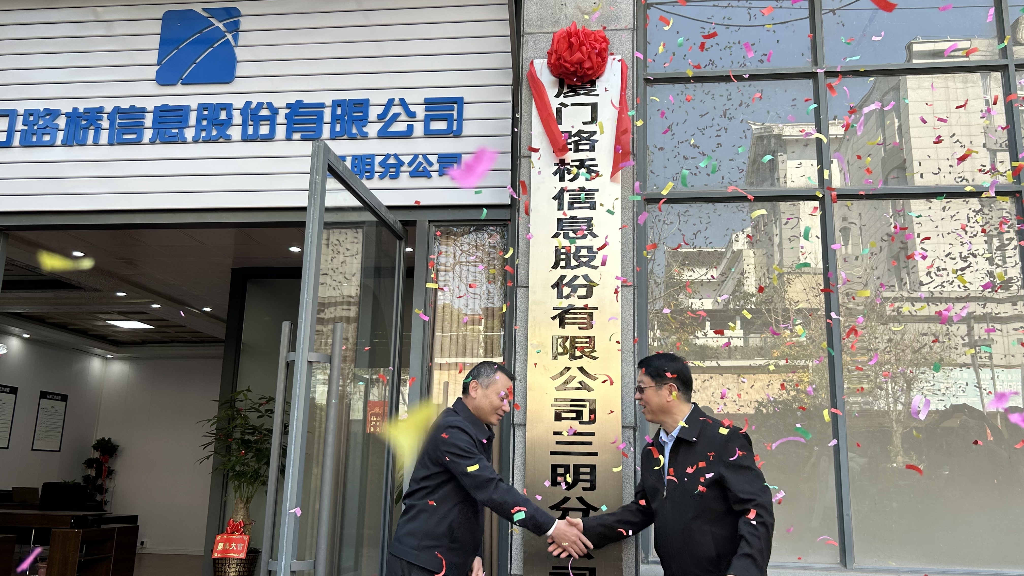 蔡发木与厦门路桥信息股份有限公司党委书记、董事长于征共同为厦门路桥信息股份有限公司三明分公司揭牌。