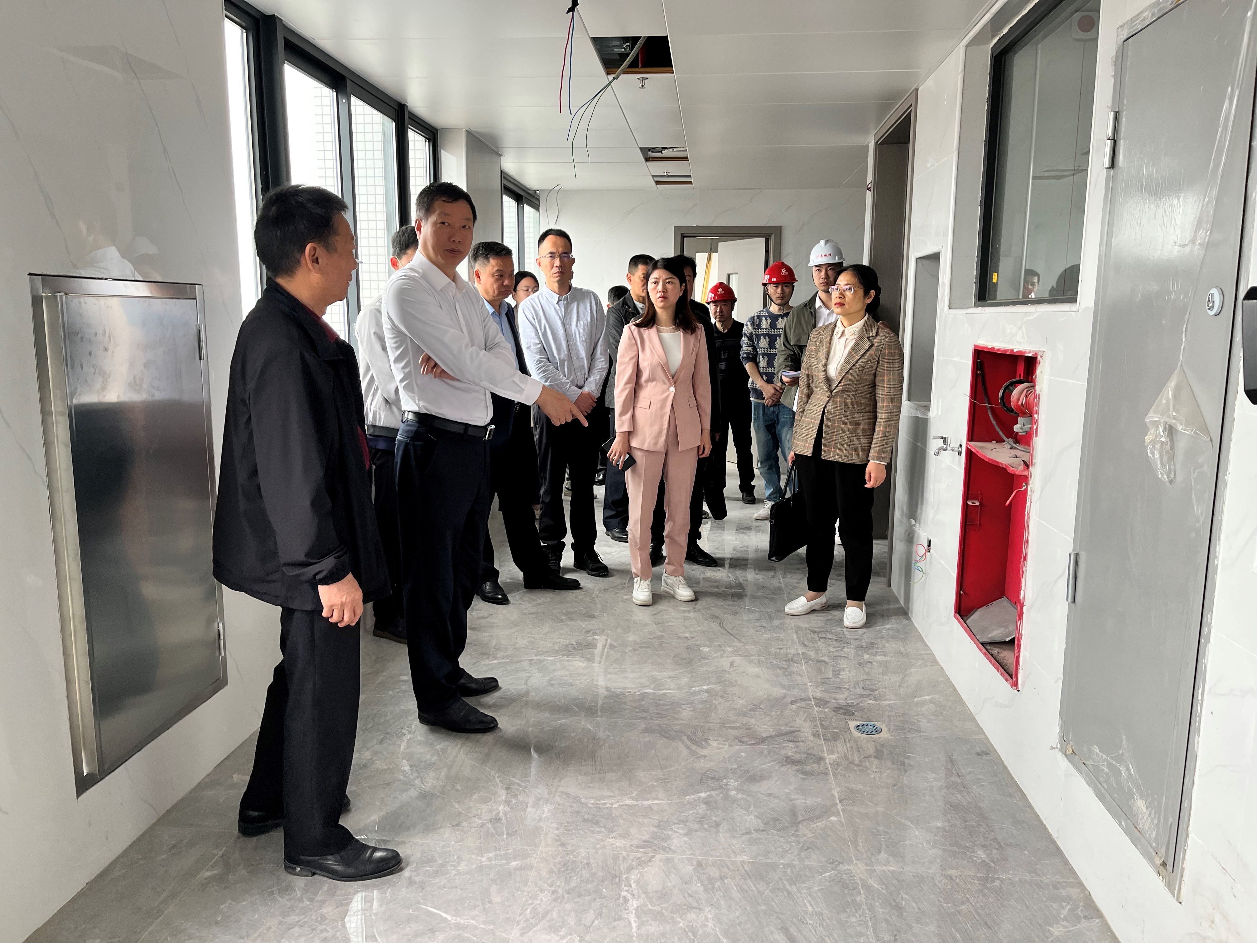 4月6日上午, 区委书记吴健成召开全民健康示范县创建工作现场推进会,实地察看总医院应急救治病房综合楼建设项目,beat365中文官方网站总经理黄发樟、副总经理王永水陪同调研并汇报总医院综合楼建设项目情况。