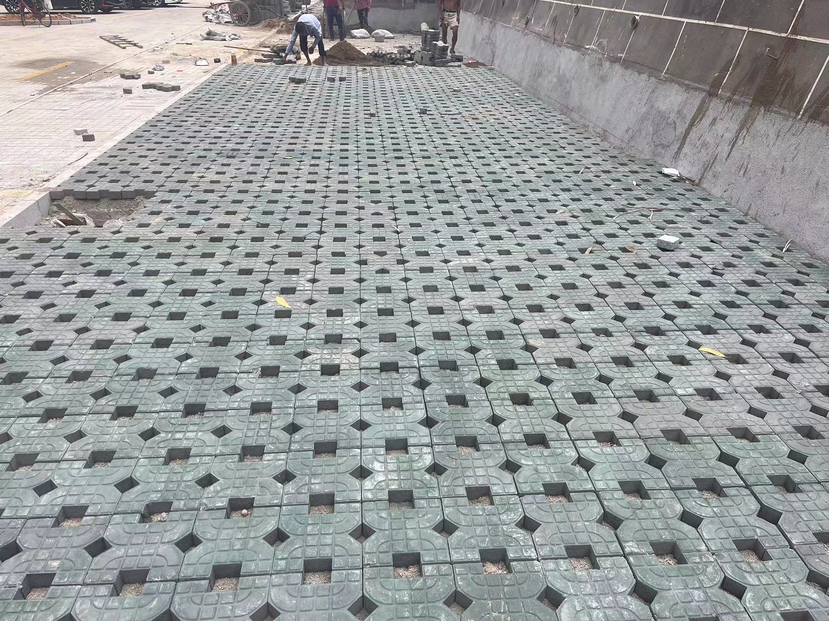 人行道铺设透水砖201平方米,路缘石安装38米。