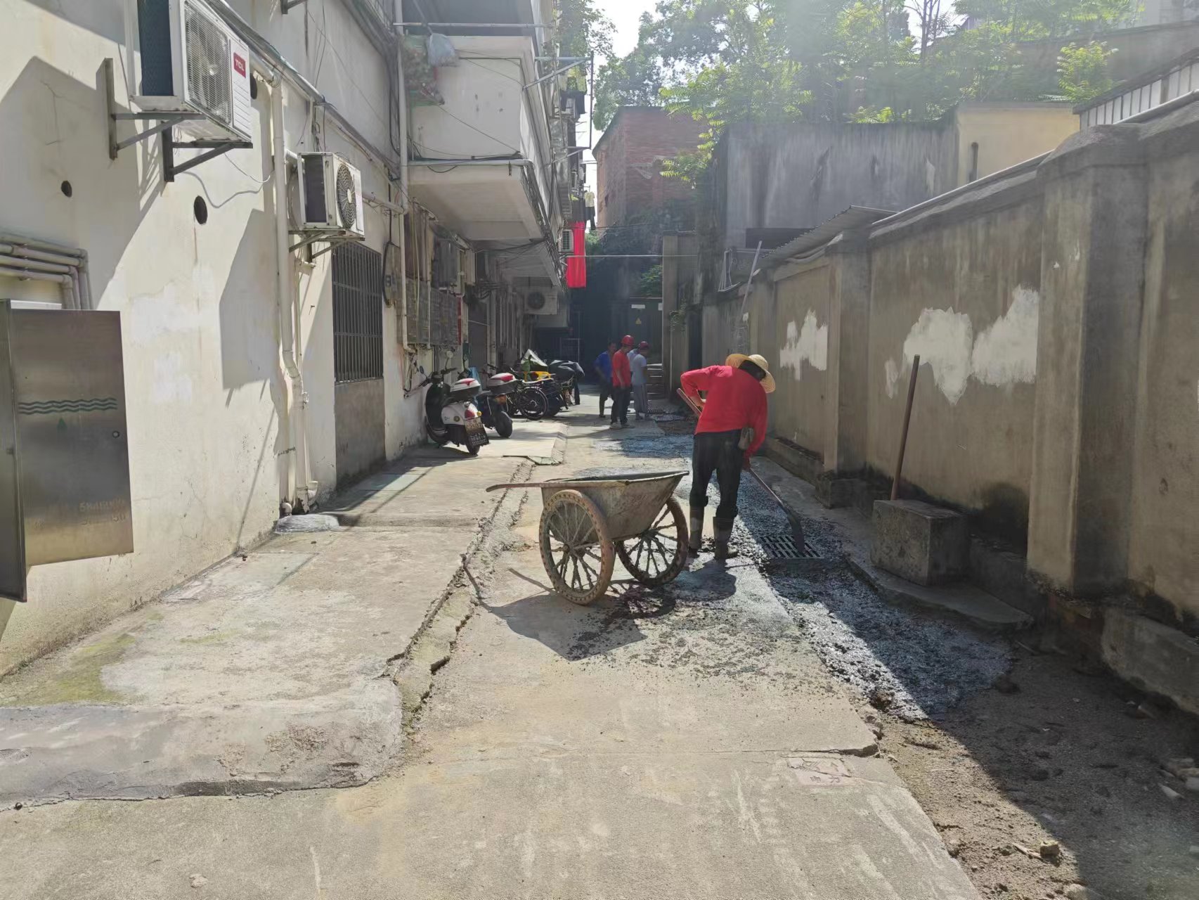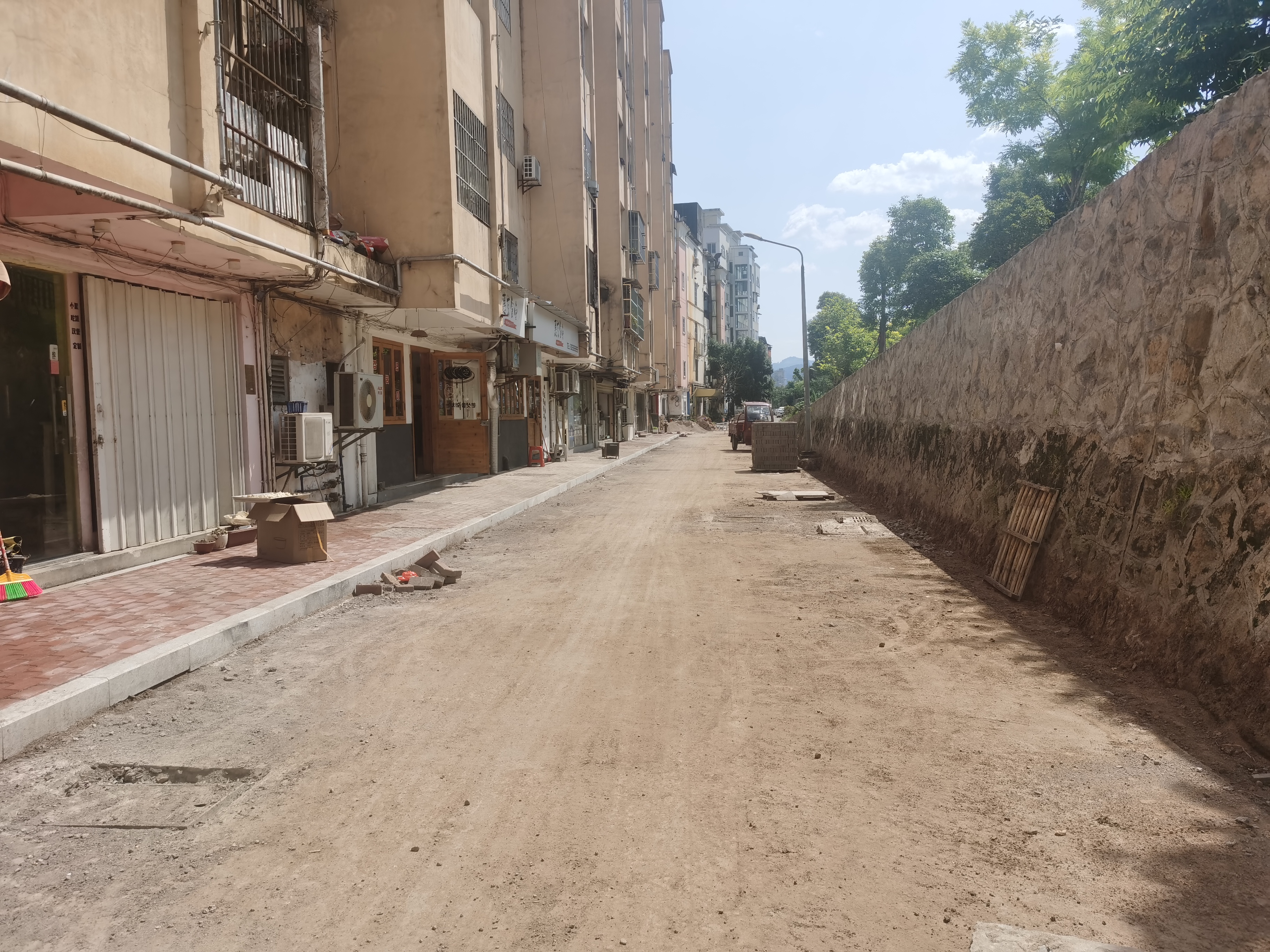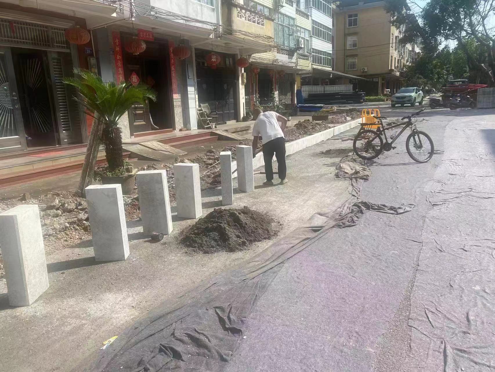 面层硬化600平方米,人行道破除500平方米,路缘石安装200米。