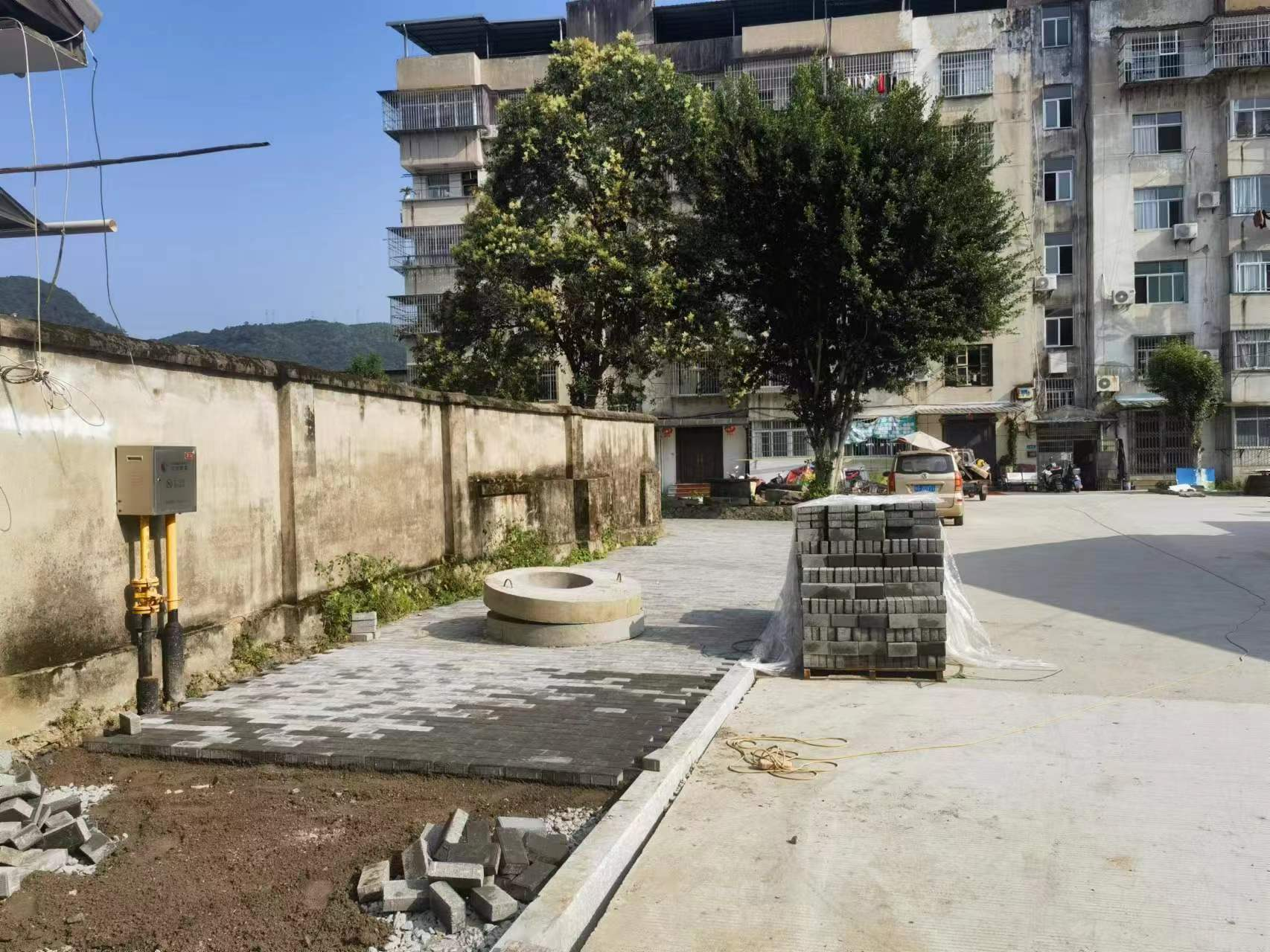 一中分校南门自行车停车场垫层完成2100平方米,透水砖铺贴完成300平方米,雨、污水管网完成40米,强、弱电管线预埋完成30米。