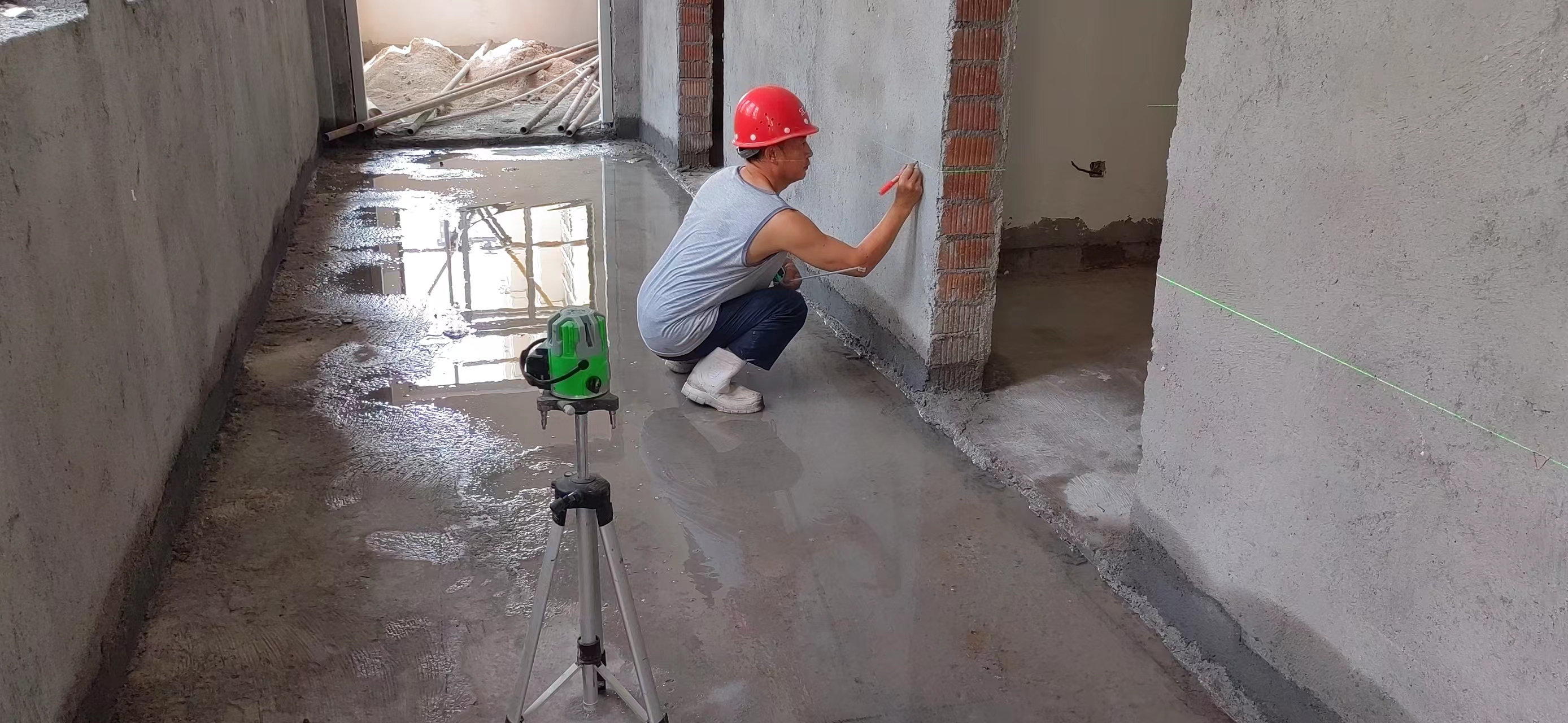 场地平整1300平方米,围墙地梁浇筑90米。