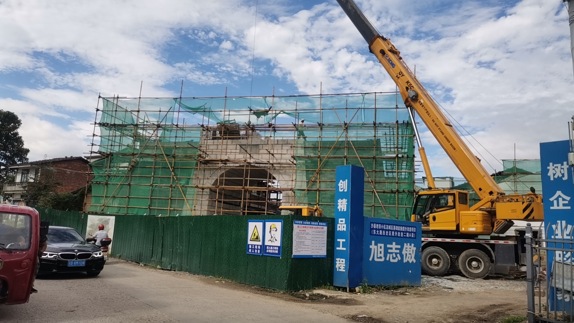 持续推进A1楼外墙木构件安装、迎恩门城楼牌匾安装、A2楼室内木构安装、庭院水景施工。