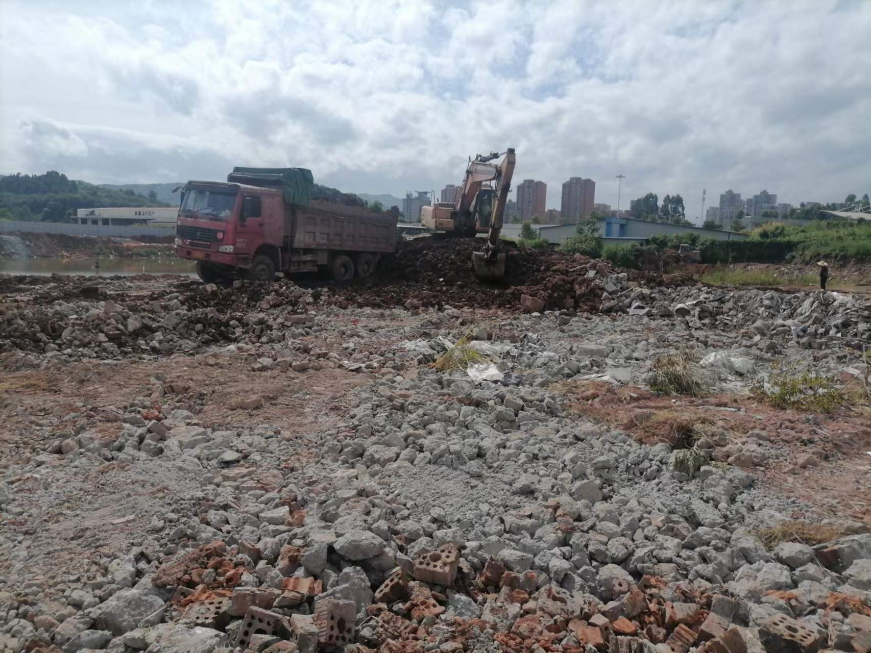 清理现场渣土,落实防台风措施。