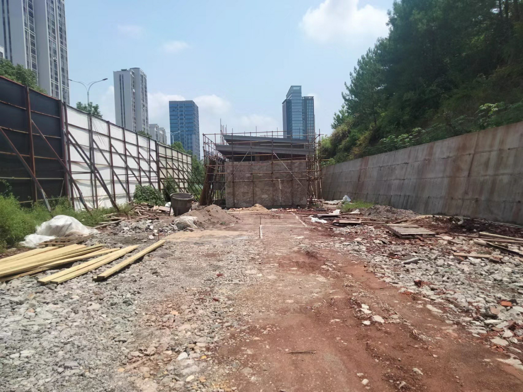 完成施工场地围挡和喷淋安装、电杆拆除及场地平整。