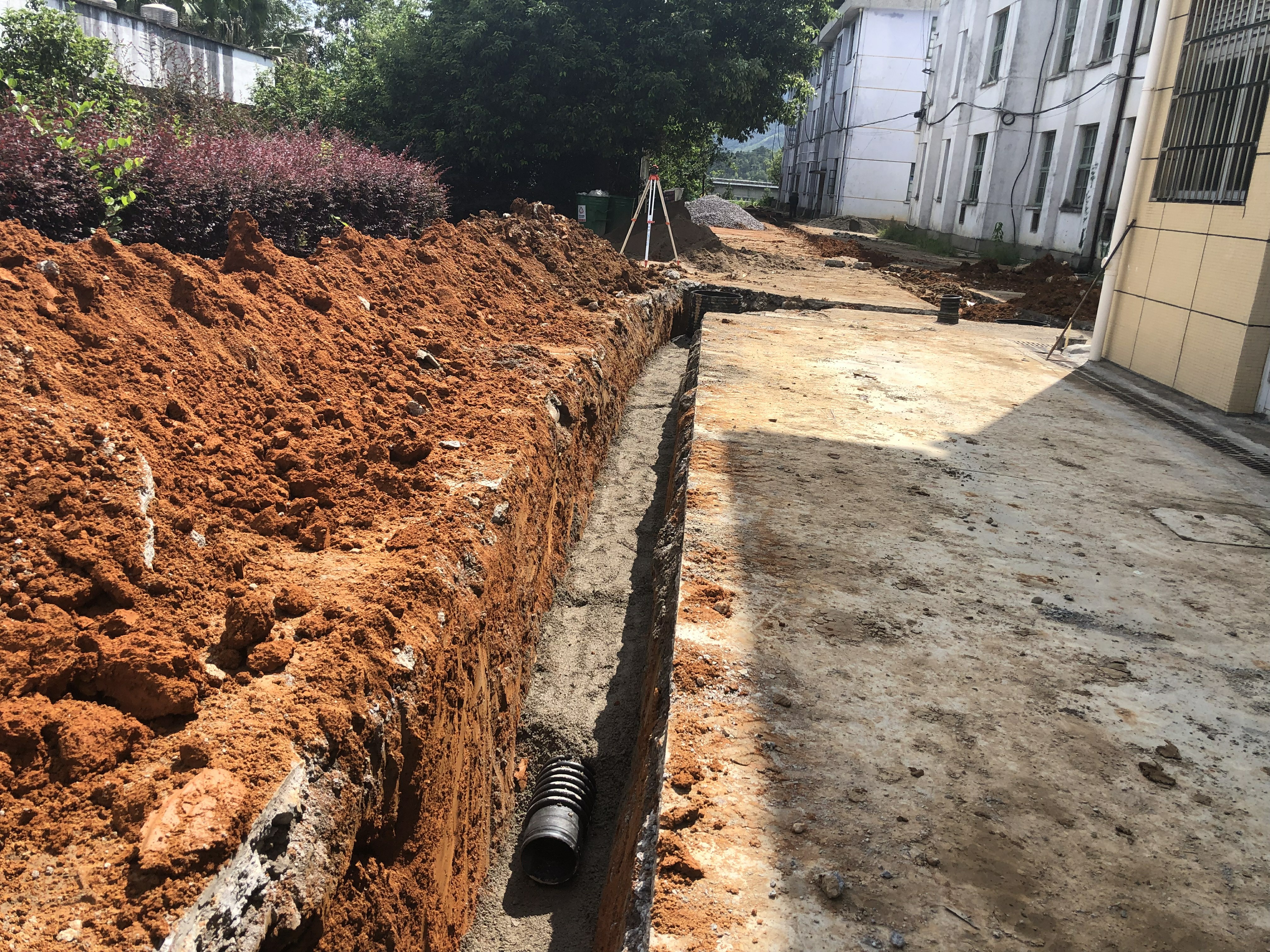 完成室外雨、污水沟槽开挖及管道安装。