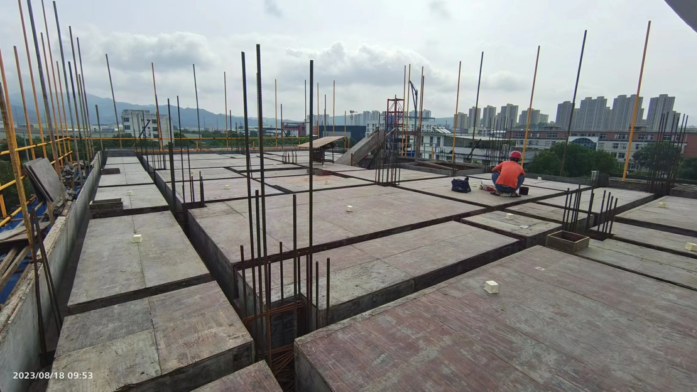 进行三层柱和四层梁板施工。