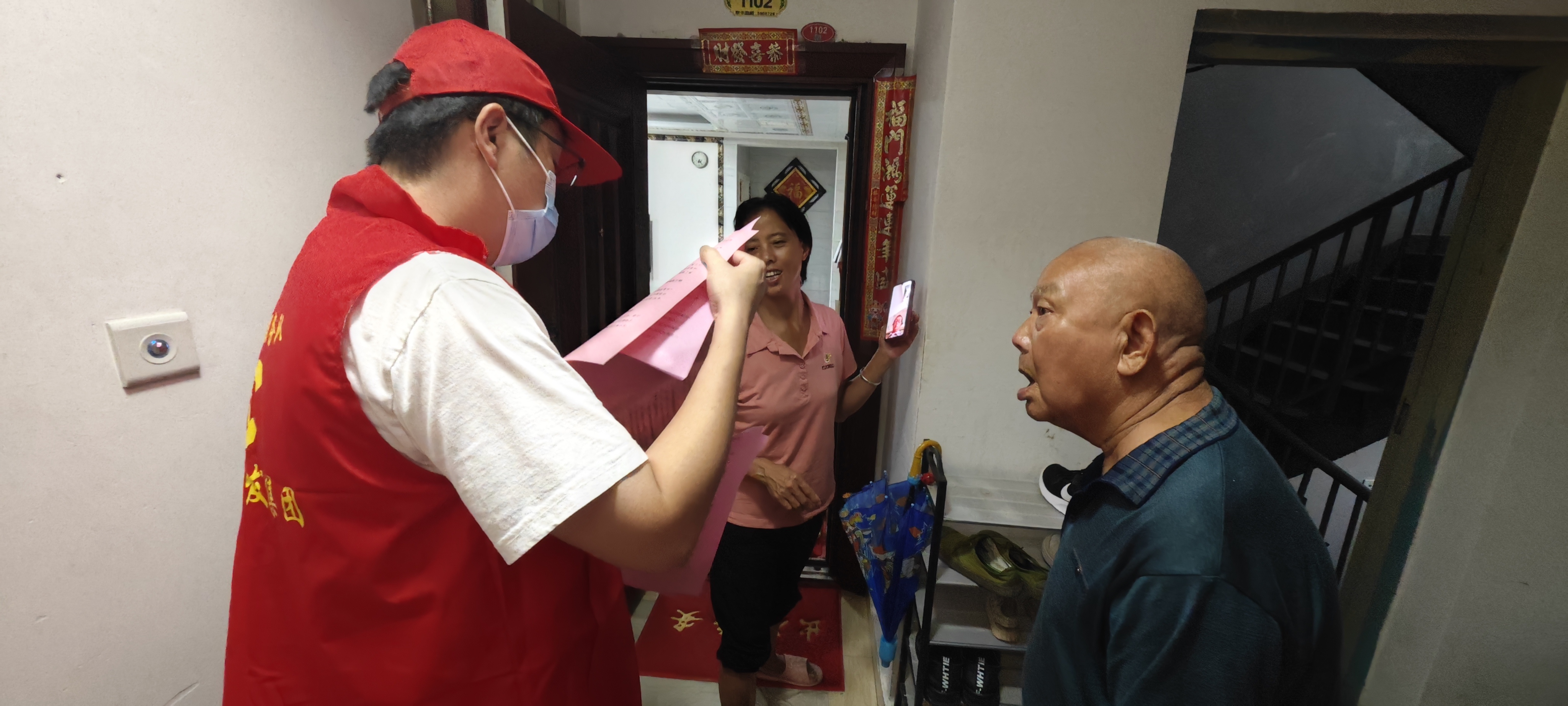 在金古明珠小区,针对楼道乱堆杂物、高空抛物等不良行为,广大志愿者入户进行文明劝导,宣传创卫知识,提高居民文明意识。