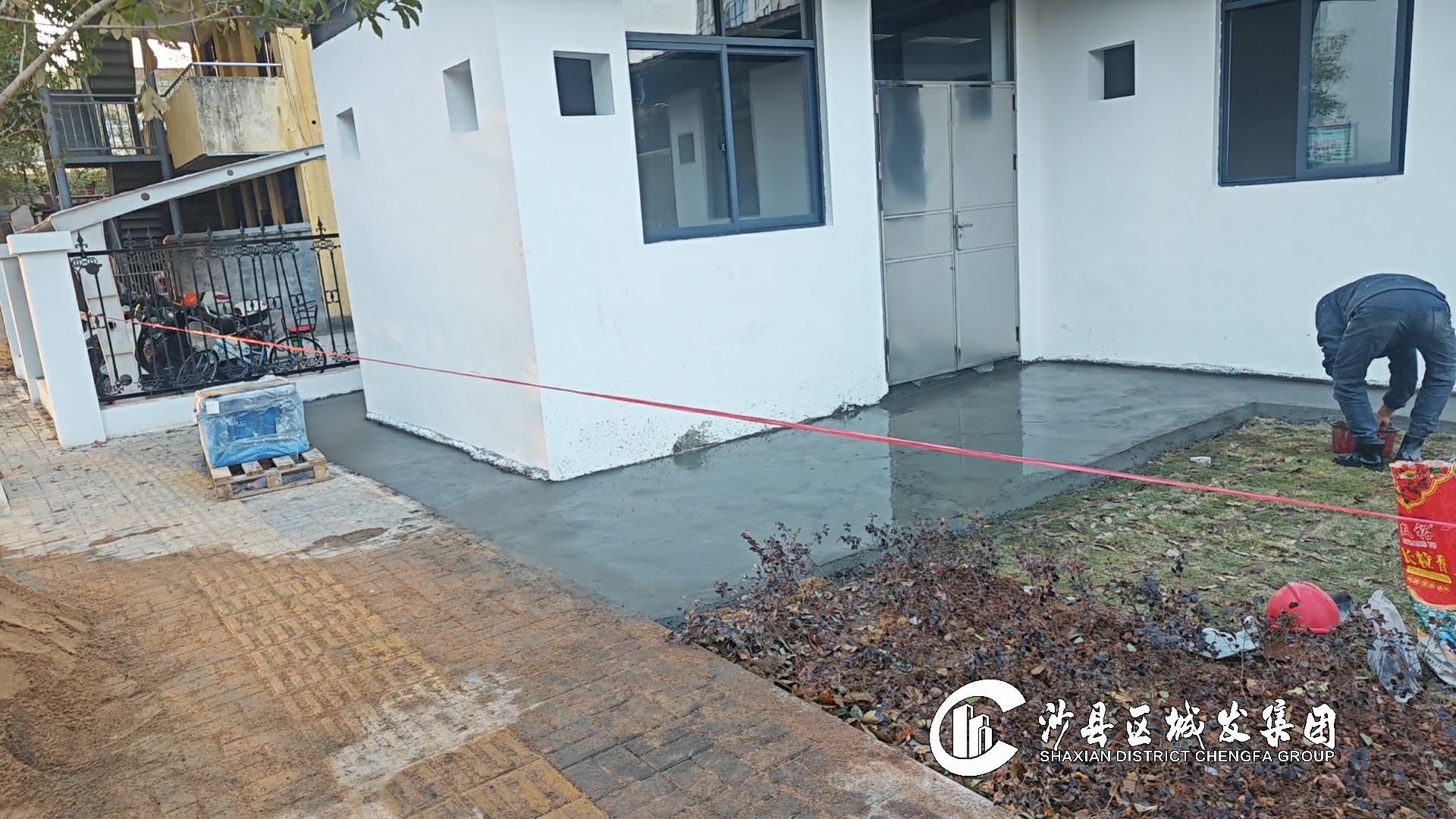 完成水泥硬化200平方米,路灯电源线施工200米,累计完成总工程量的94%。