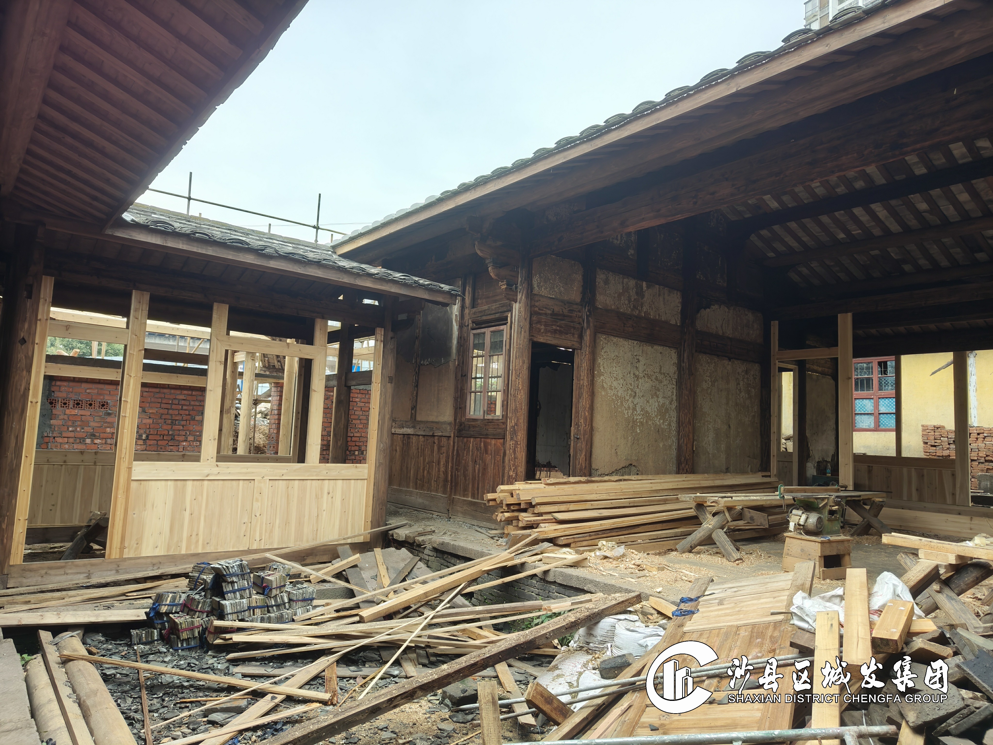 完成147#第三进主厅屋面挂瓦施工。持续推进132#和147#木构件加工、132#和147#封火墙砌筑。