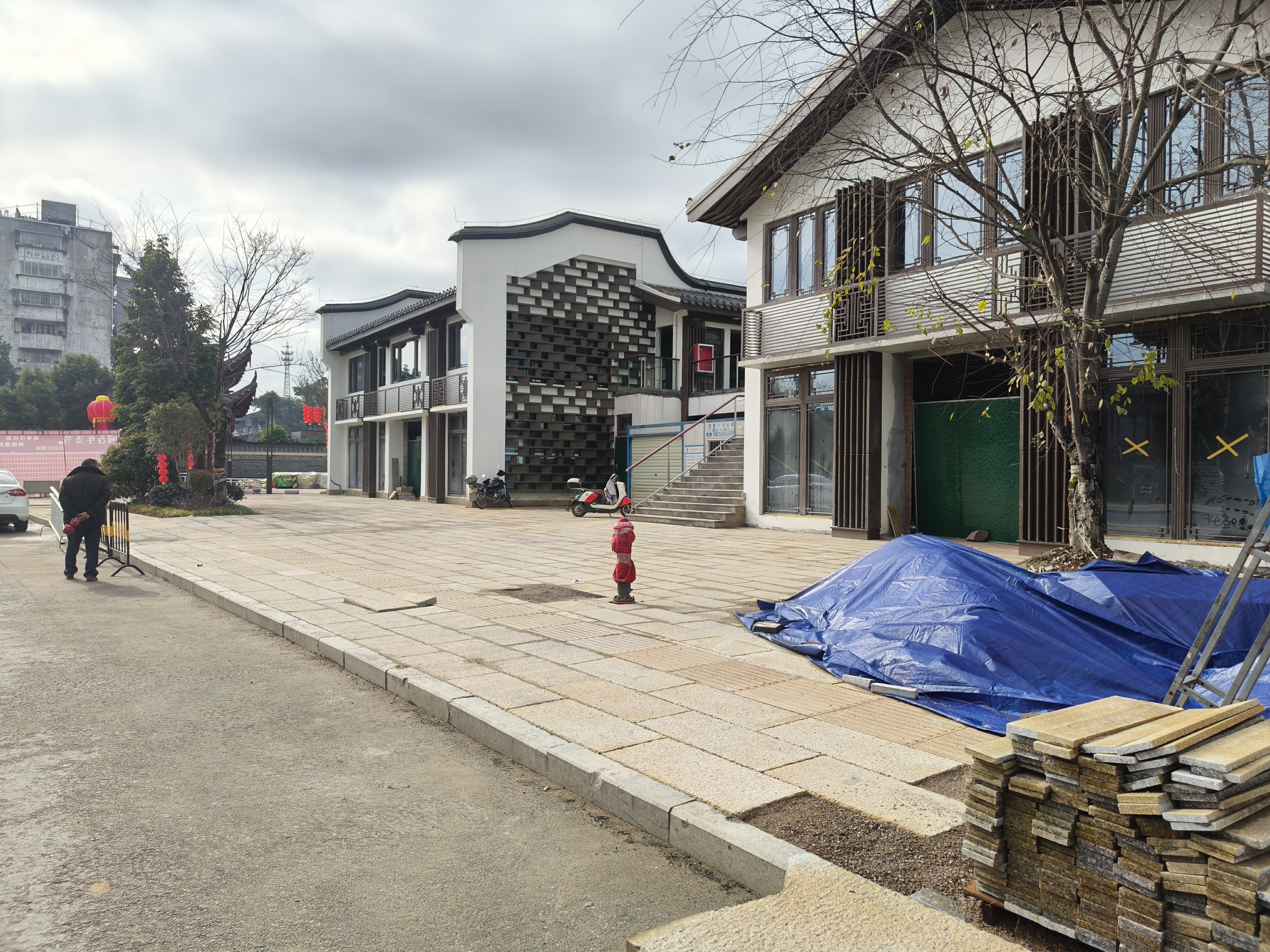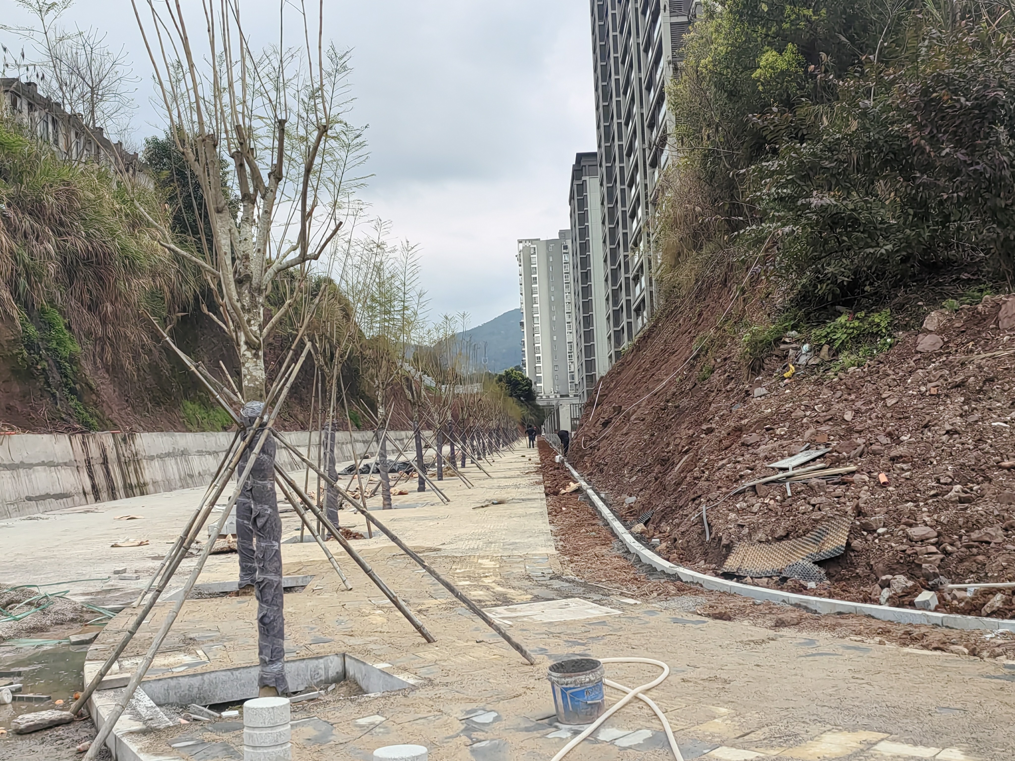 完成透水砖人行道铺贴和乔木种植。