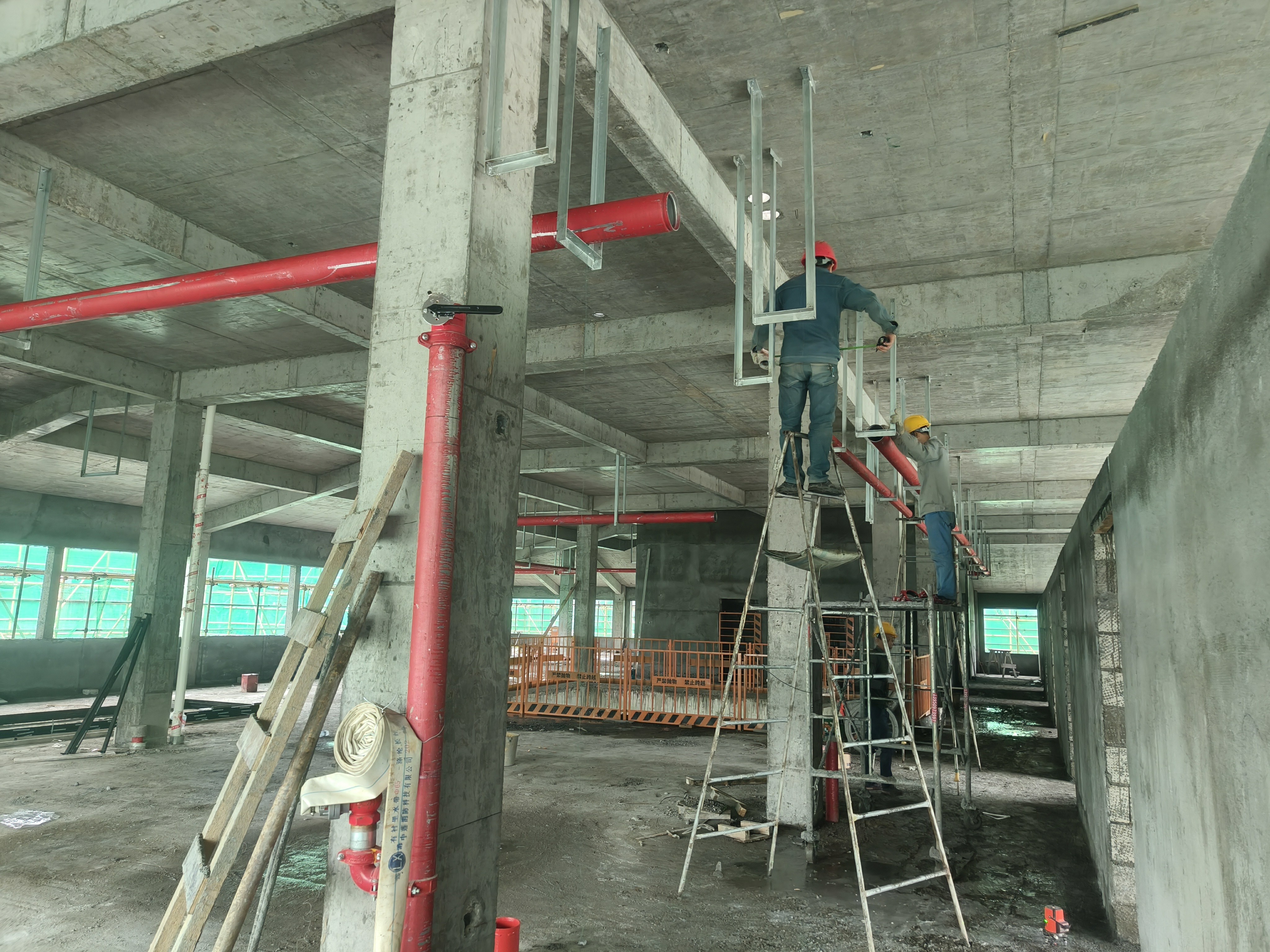 土建工程:进行1号门卫房钢结构防锈漆粉刷,管理房二层水电预埋及室内装修,地下室设备安装。