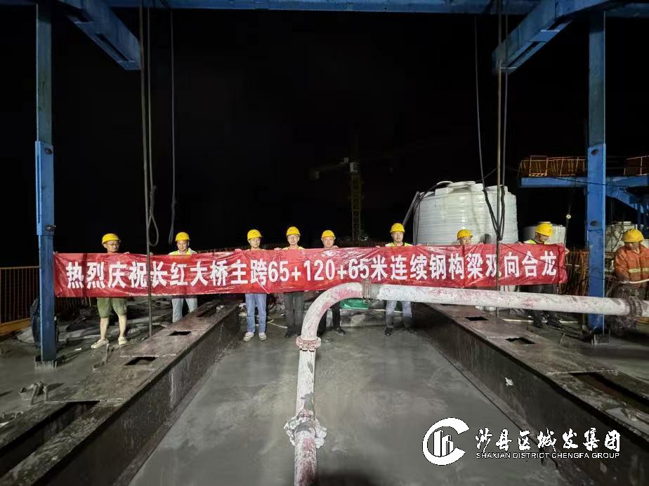 2024年9月28日凌晨,沙厦高速公路沙县虬江互通及接线工程A6标段长红大桥120米主跨连续钢构梁成功完成了合龙段的最后一方混凝土浇筑,标志着沙厦高速公路沙县虬江互通及接线工程A6标段取得了重要的阶段性胜利,为整个项目的顺利通车奠定了坚实的基础。