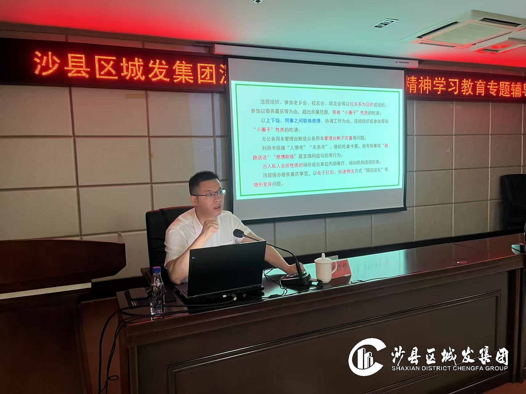 为深入学习贯彻习近平总书记关于加强党的作风建设的重要论述,扎实开展深入贯彻中央八项规定精神学习教育,4月28日,beat365中文官方网站举办深入贯彻中央八项规定精神学习教育专题辅导讲座,邀请区委党校副校长邱旺根作专题辅导,集团班子成员、中层管理人员和各党支部党员参加学习。
