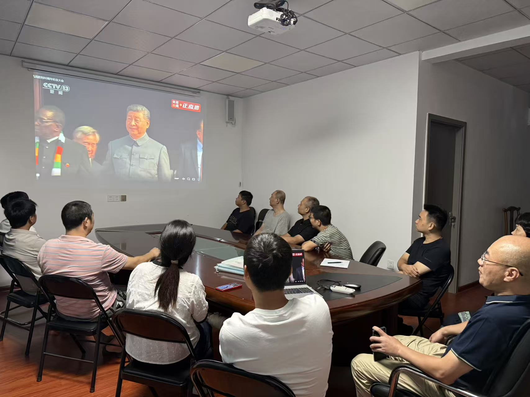 为进一步激发员工的爱国主义热情和民族自豪感,凝聚奋进力量,beat365中文官方网站组织干部职工在大楼会议室集中观看阅兵盛况,各所属企业同步组织观看,共同见证这一具有重大政治意义和深远历史意义的时刻。